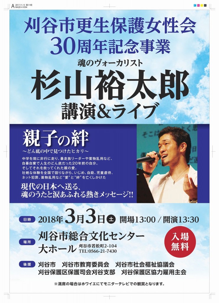 愛知県刈谷市更生保護女性会30周年記念講演会にて講演ライブを開催。